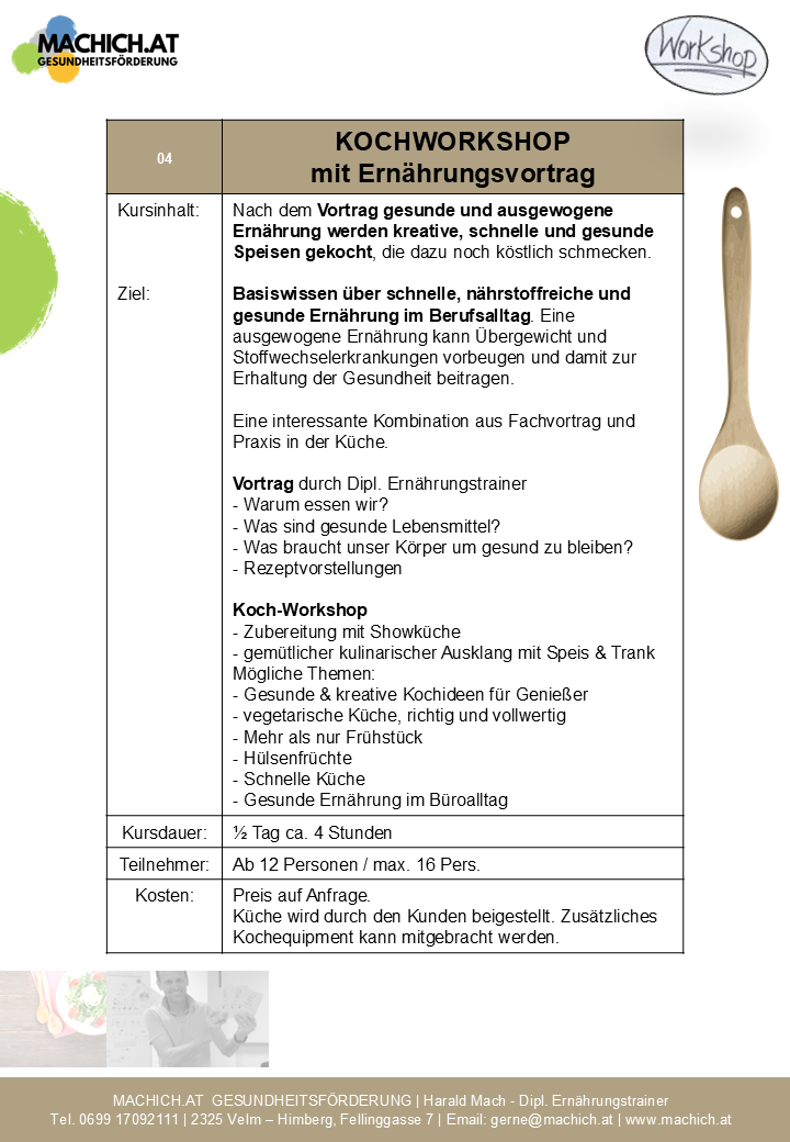 KOCHWORKSHOP mit Ernährungsvortrag