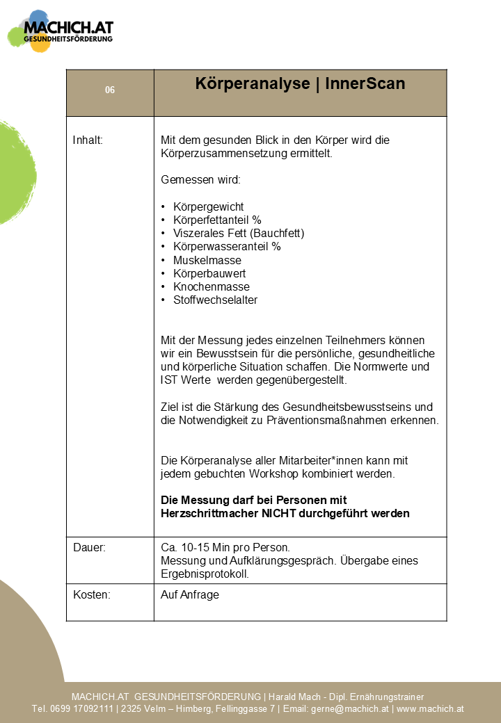 Die Körperanalyse kann mit jedem Kurs/Workshop optional kombiniert werden.